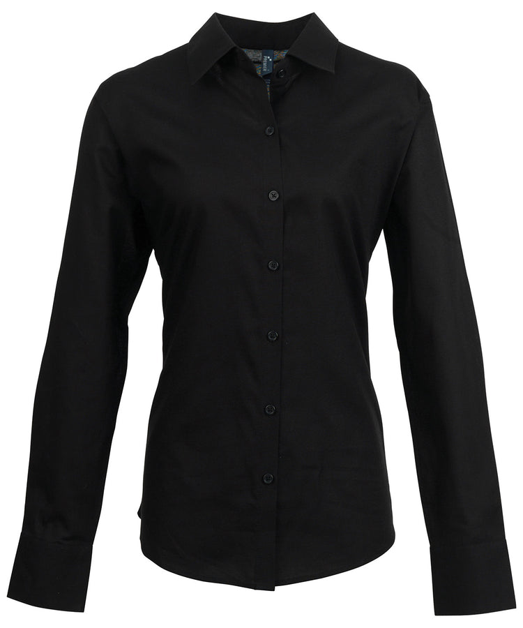 • Blusa Oxford de manga larga para mujer con acabado sin arrugas para una apariencia elegante y profesional.