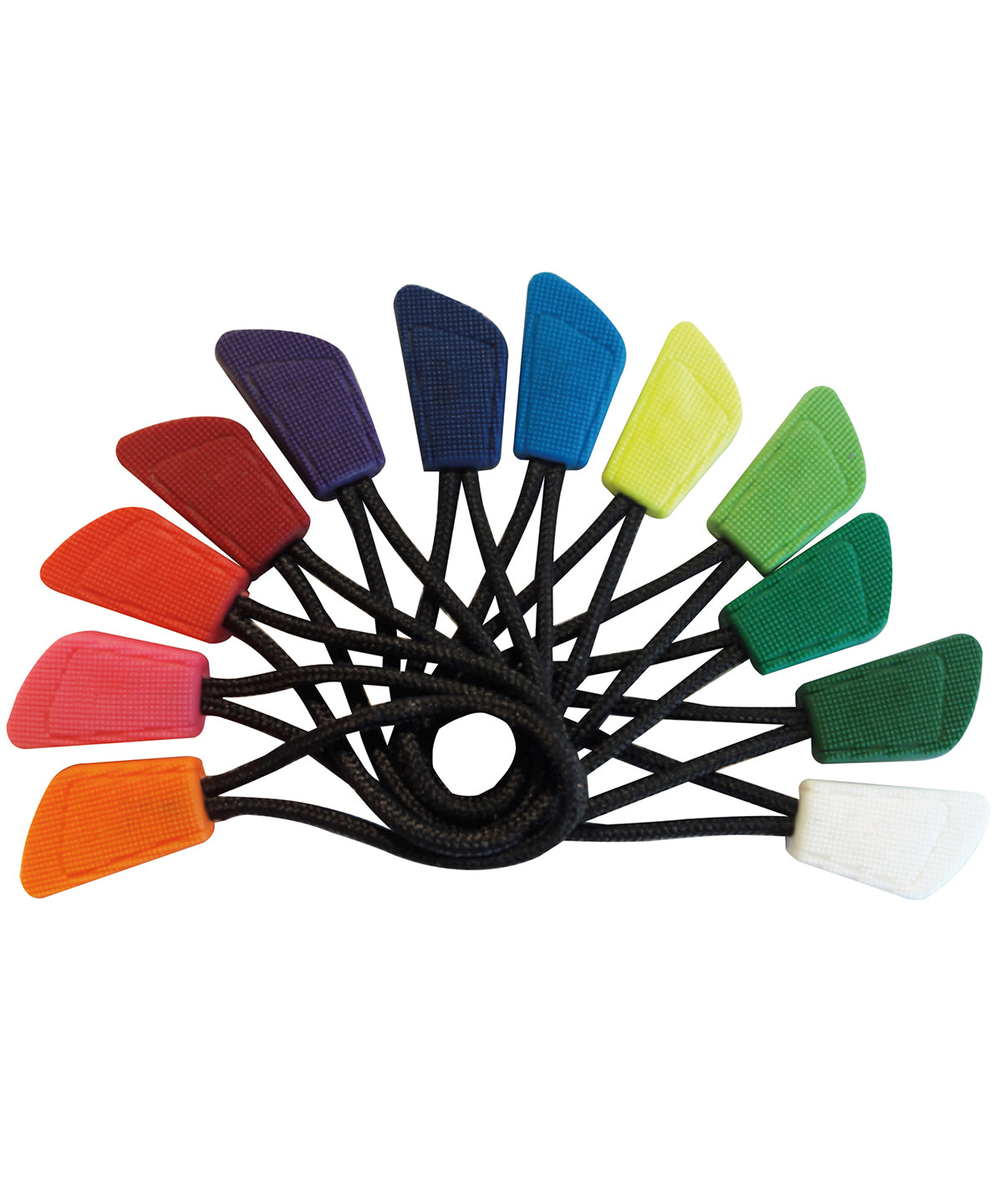 Impulsa tu estilo y personaliza tus prendas con los tiradores de cremallera de teeuno. Disponibles en una gama arco iris de colores, estos tiradores de cremallera son la solución perfecta para aquellos que buscan una solución específica de color. Cada tirador viene con un cordón negro y un botón de color, lo que permite una personalización completa para que coincida con cualquier prenda.