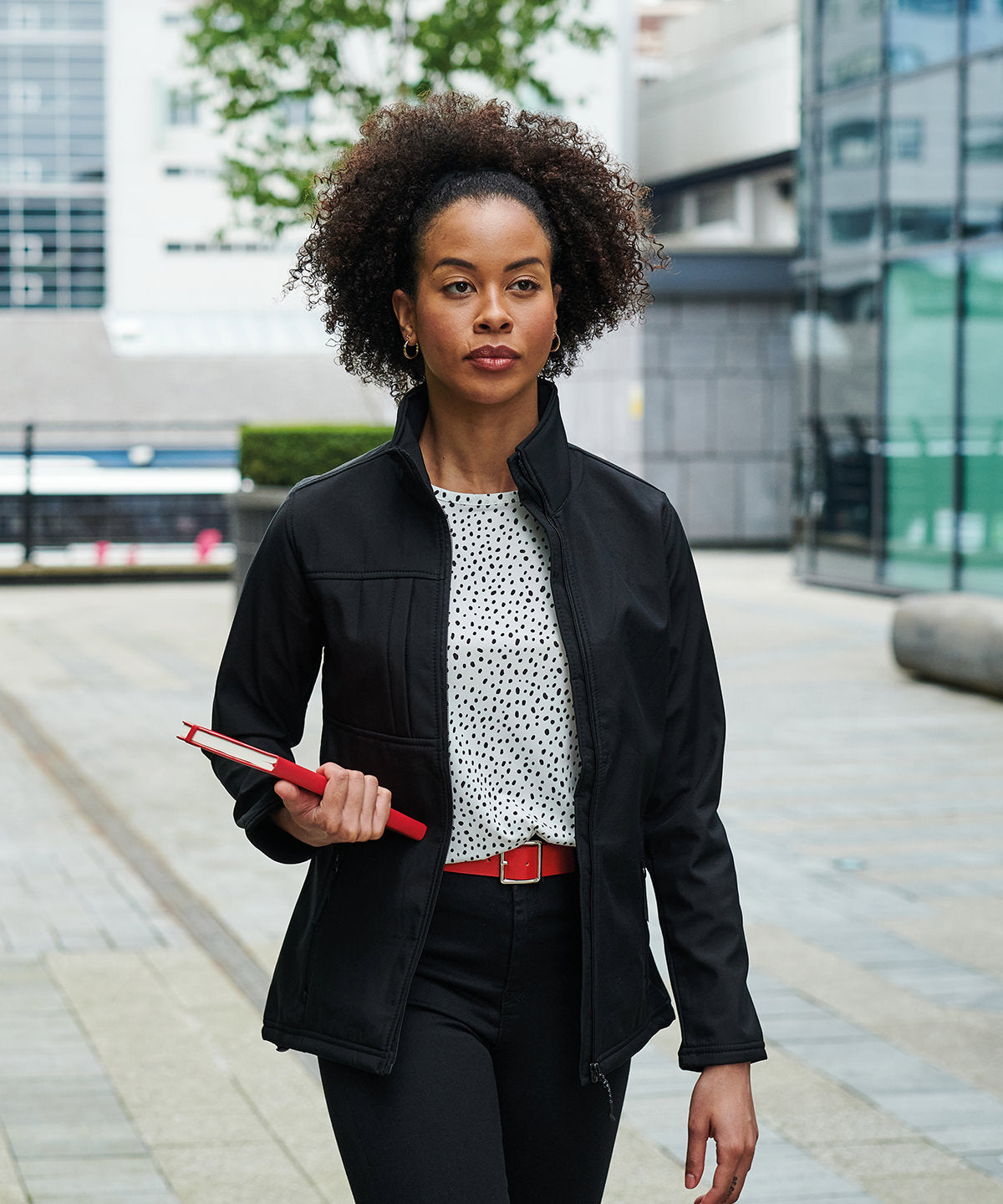 Con la chaqueta softshell Octagon II para mujeres de Teeuno, no solo estarás a la moda, sino que también estarás preparada para cualquier clima. Esta chaqueta inteligente y compacta está diseñada con un tejido de membrana de 3 capas que garantiza una verdadera transpirabilidad. El respaldo cálido de la softshell proporciona un estiramiento natural para la agilidad, asegurando que te muevas con total libertad y comodidad.