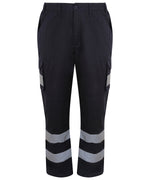 Además de su funcionalidad, estos pantalones cargo ofrecen un alto nivel de protección. Están disponibles en colores de alta visibilidad como naranja y amarillo, ambos con un dobladillo contrastante en azul marino, proporcionando protección de nivel 1. Para las ocasiones en las que se requiere menos protección, también están disponibles en azul marino sólido.
