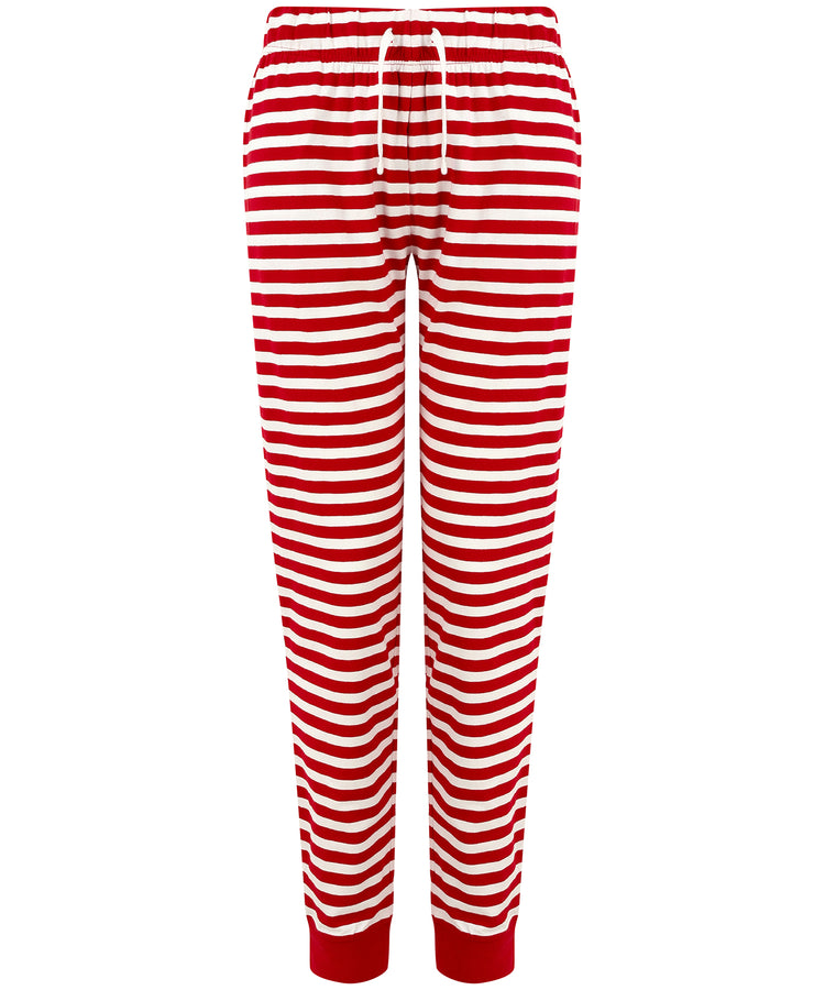 Pantalones de estar por casa para mujer con dobladillo | Rayas Rojas/Blancas