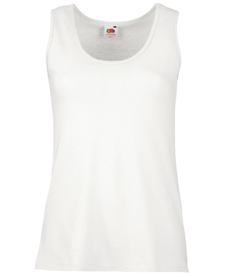 Camiseta sin mangas para mujer ValueweightCon costuras laterales en forma para un ajuste femenino. Ribete de tela en cuello y sisas. Calibre de punto fino para una mejor impresión. Certificado WRAP.