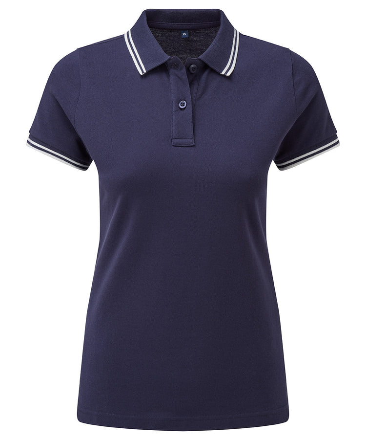 • Polo ajusté pour femme avec détails contrastés au col et aux poignets.