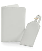 Cet ensemble de deux pièces est une option souhaitable pour toute collection d'accessoires de voyage. Fabriqué avec un aspect sophistiqué de cuir de grano fino Saffiano, l'ensemble a une aire de distinction qui ne passera pas à desapercibido. La texture suave de l'intérieur et les détails métalliques de haut brillant en or ajoutent une touche de sophistication à cet ensemble.