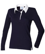 Camiseta de rugby lisa de manga grande pour femme | Bleu Marino/Blanco - Marino/Blanco Brillante