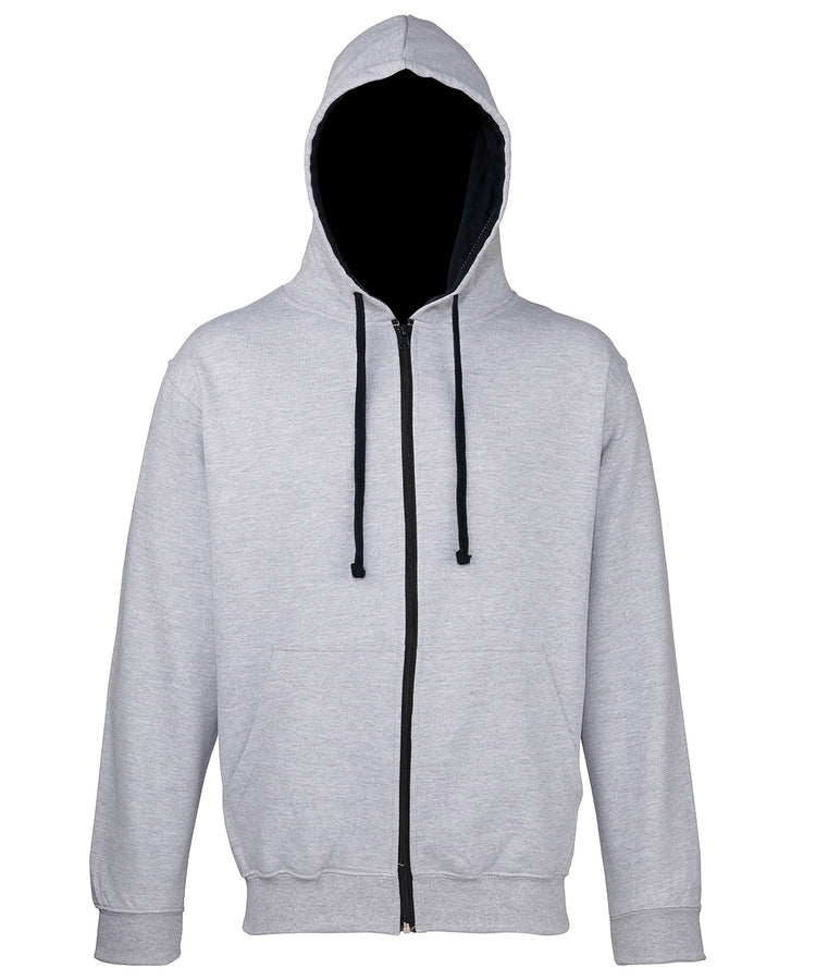 • Sweat à capuche entièrement zippé avec fermeture éclair en plastique contrastée.