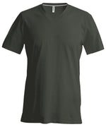 Camiseta de manga corta con cuello en V para hombre. Fabriqué en 100 % coton lavé avec des enzymes pour une sensation douce au toucher (Gris Oxford : 90 % coton / 10 % viscose). Ajustez ceñido. Cuello de la misma tela.